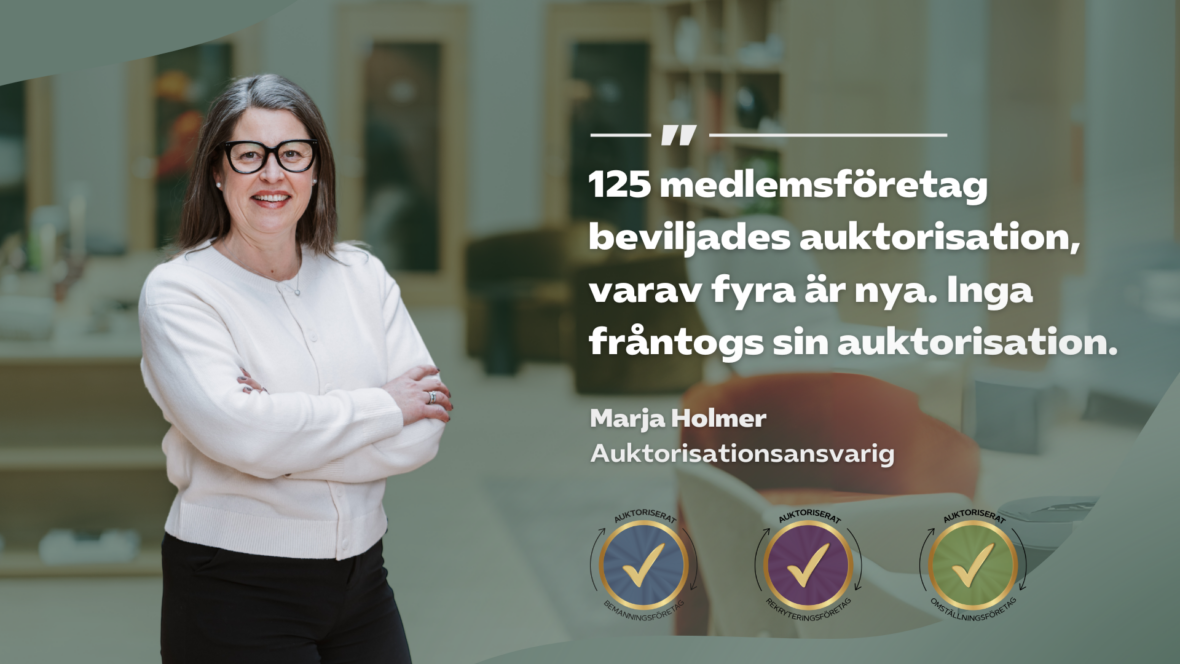 Av dessa auktoriserades följande företag för första gången: Flexibel Personal Höglandet AB, MJF Butchers AB, MTX Kompetensförsörjning AB och NearYou Skåne AB.