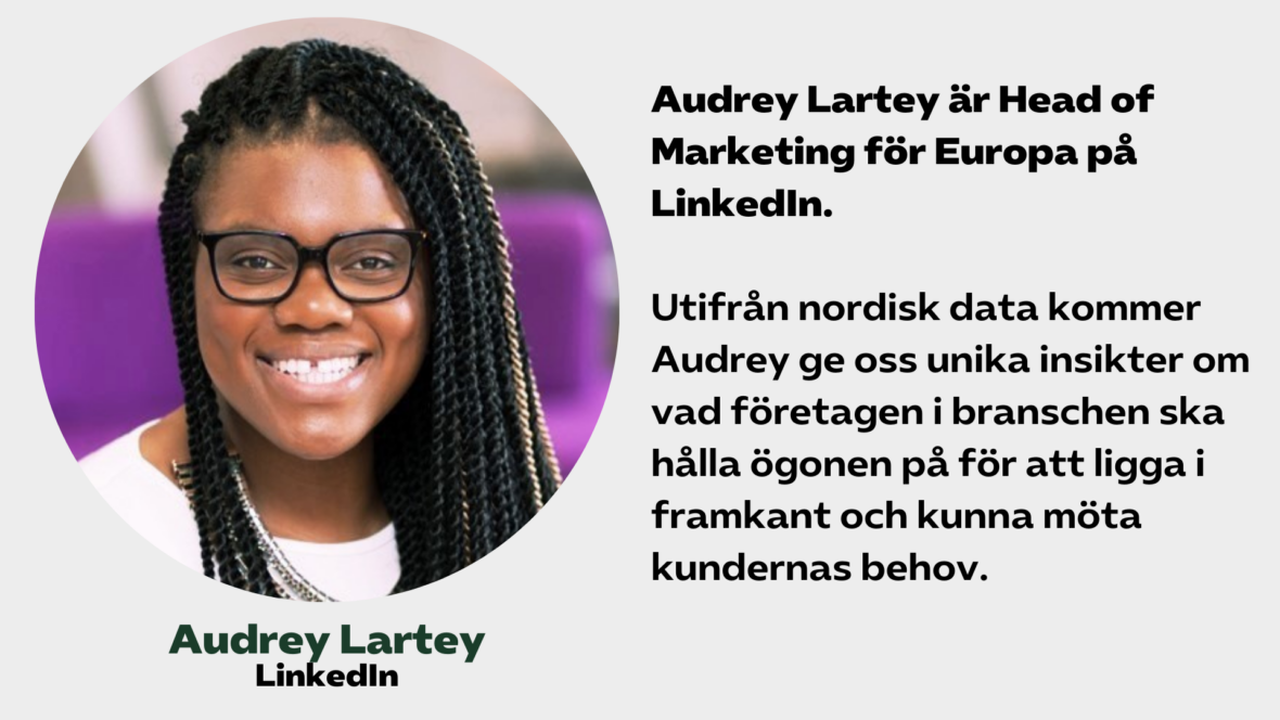 – Audrey Lartey, Head of Marketing för rekryterings- och bemanningsbranchen EMEA LATAM, LinkedIn - Paneldiskussion – inför 2025