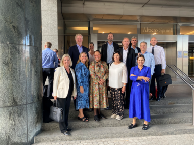 Kompetensföretagens styrelsen 2022 står på trappa framför byggnad i Bryssel