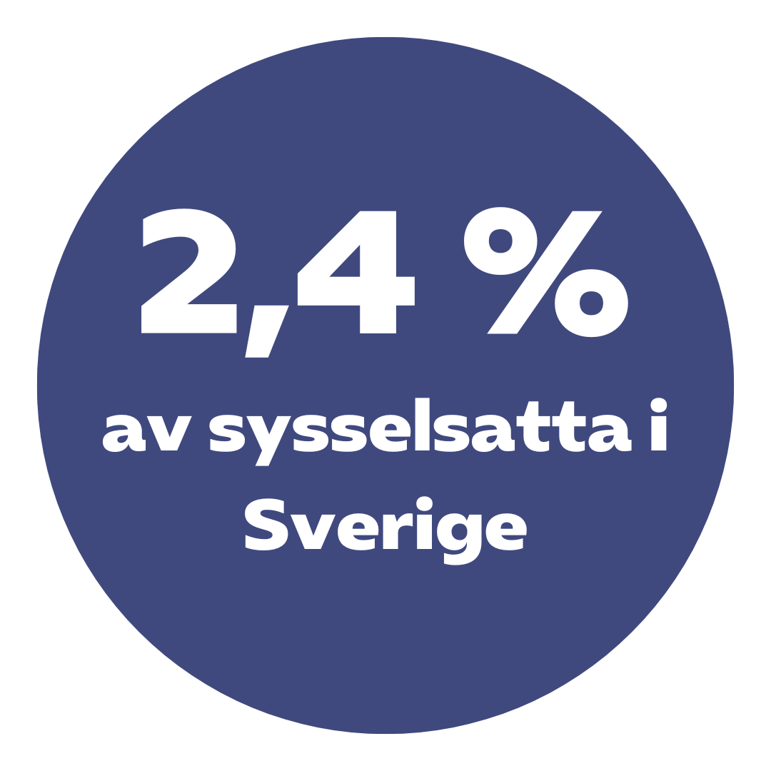 2022 års uppgifter för det totala antalet sysselsatta i riket samt antalet anställda i branschen kan vi bestämma penetrationsgraden till 2,4 procent. Det finns dock skäl att tro att denna siffra är i underkant då SCB i antalet sysselsatta inte bara innefattar de som faktiskt arbetar utan även personer som befinner sig i arbetsmarknadspolitiska åtgärder.