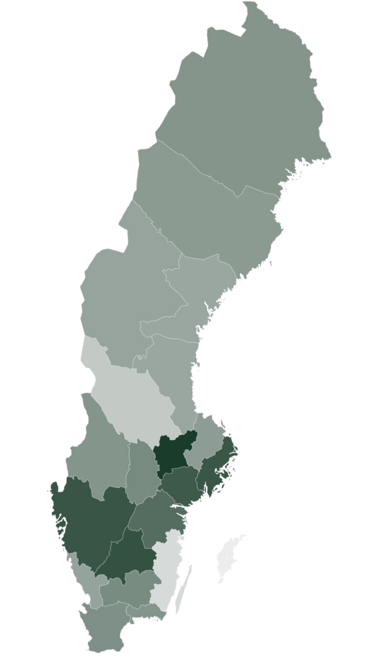 Den lägsta andelen finns på Gotland och I Kalmar. Siffrorna är från 2022.