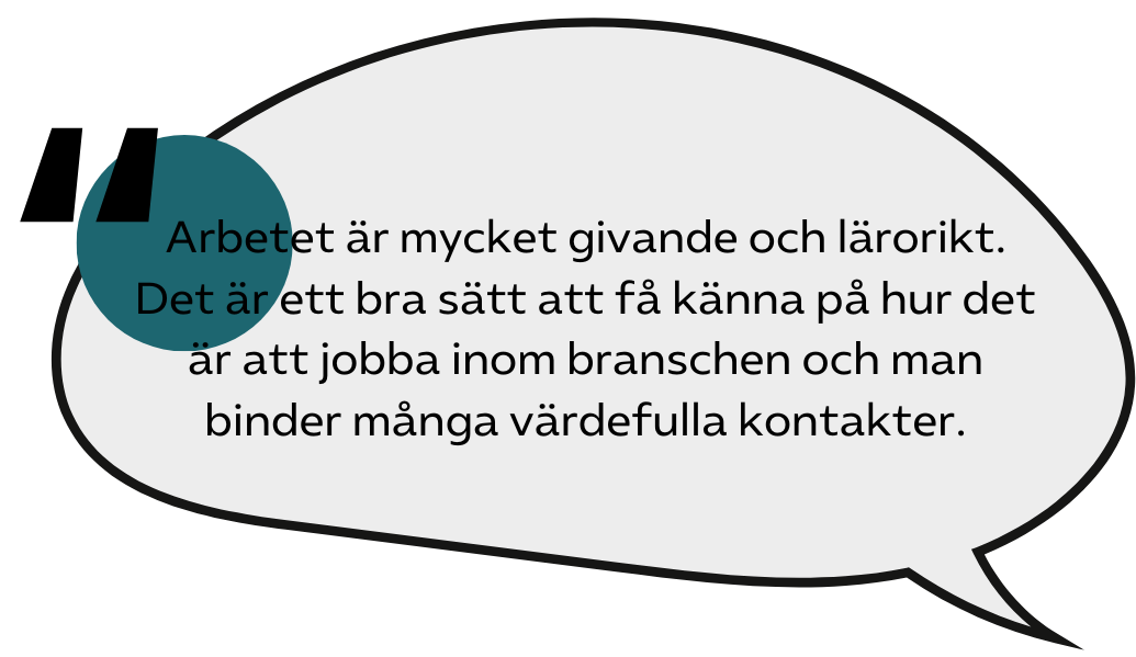 ”Det är ett bra sätt att komma in branschen. Man får jobba med olika företag och får bra rutin att ta med sig till nya uppdrag.”